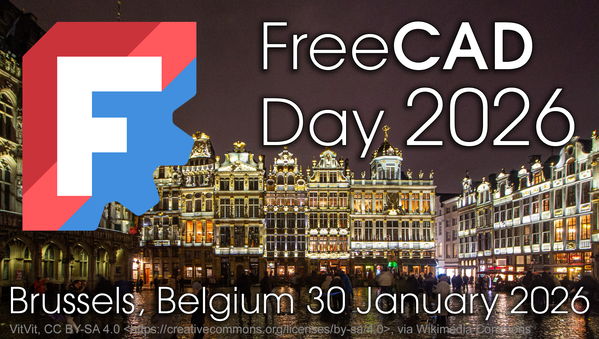 FreeCAD Day 2026 is a FOSDEM pre-conference for users and developers of the open-source parametric 3D design package FreeCAD. Anyone is welcome to attend: there is no charge, but pre-registration is requested so we know how many people to expect. If you are interested in presenting at the event, please see the Call for Participation and submit your idea for a lightning talk! Don't forget to also join us at FOSDEM in the Open Hardware and CAD/CAM Devroom on Sunday, 1 February 2026.